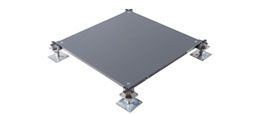 系统由地板、支座、防震垫、螺钉组成。安装时地板放置在带有防震垫的支座上,螺钉穿过地板周围的角锁孔直接连接在支座上,支座为镀锌及铸铝合金结构,高度可调并能自锁。